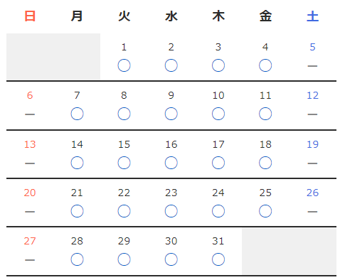 ホテルの予約システムと同じカレンダーベースの予約画面で