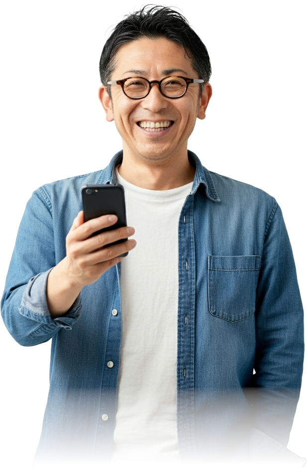 導入は簡単です。必要なのはいつもご使用しているスマホだけです。また、初期費用0円・月額利用料無料のフリープランで今すぐにでも始められます。