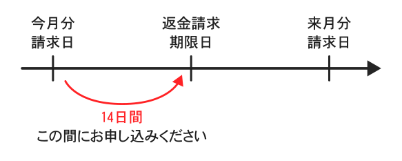 ご連絡をいただいて2営業日以内に返金のお手続きを行います。